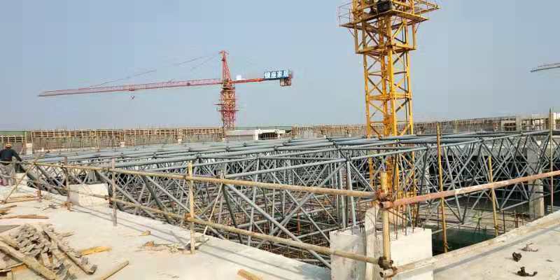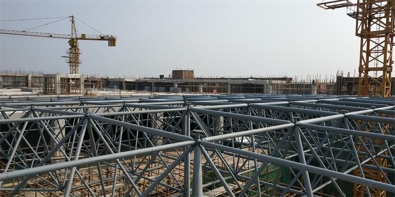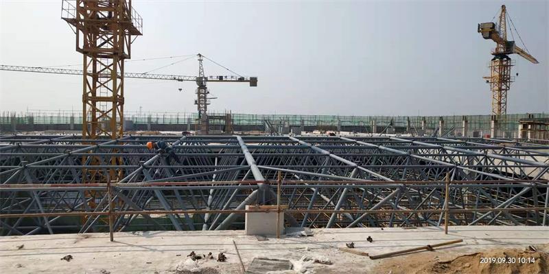 點(diǎn)支承網(wǎng)架比周邊支承的網(wǎng)架高度要大一些。當(dāng)網(wǎng)架中有穿行管道時(shí),網(wǎng)架高度要滿(mǎn)足要求